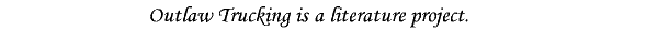 I don't want what I have done- will be doing with Outlaw Trucking- to be simply a curiosity as a piece of literature. At the very least; I don't want it to become just only this because of my lack of ability to explain reality, the environment doing this work, or the mentality of people making a living or a career driving Interstate trucks. If the writing I do make is little understood or unappreciated? I want this to only be because of the small-mindedness or the inability of those reading what I have to say not being able to comprehend or understand simple and basic human feelings and values.